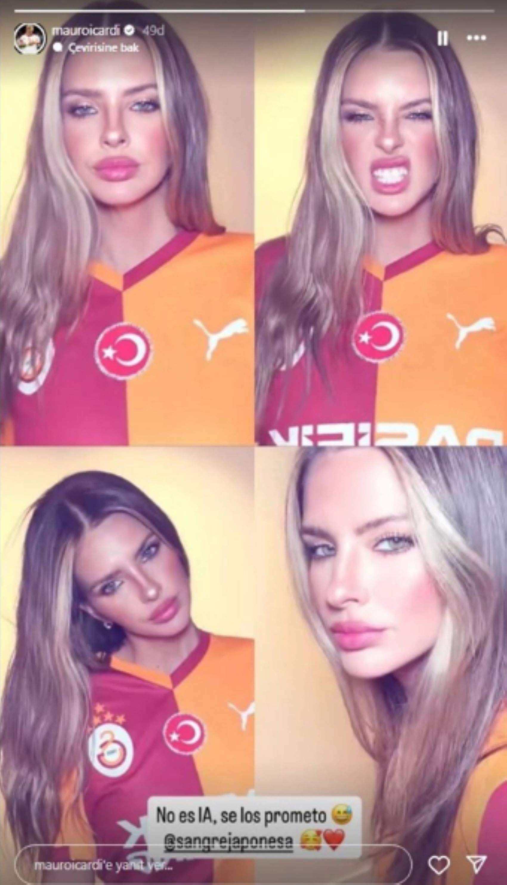 Mauro Icardi, sevgilisi China Suarez'in fotoğrafını paylaşarak "Yapay zeka değil, yemin ediyorum" ifadelerini kullandı.