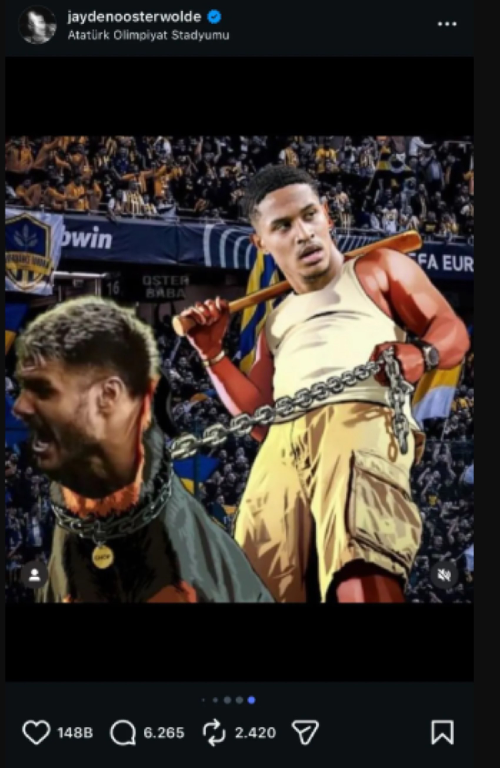 Oosterwolde attığı golün ardından Galatasaraylı yıldız golcü Icardi'nin gol sevincini yaptı. Unutulmaz mücadelenin ardından Oosterwolde, kişisel sosyal medya hesabından çok konuşulacak bir Icardi paylaşımı yaptı.