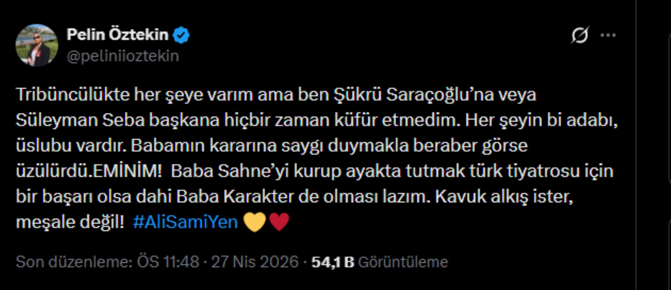 Babasının 'Kavuk'u devrettiği Çoruh için 'bu görüntüleri görseydi eminim üzülürdü' ifadelerini kullanan Pelin Öztekin, tepkisini şu sözlerle gösterdi: