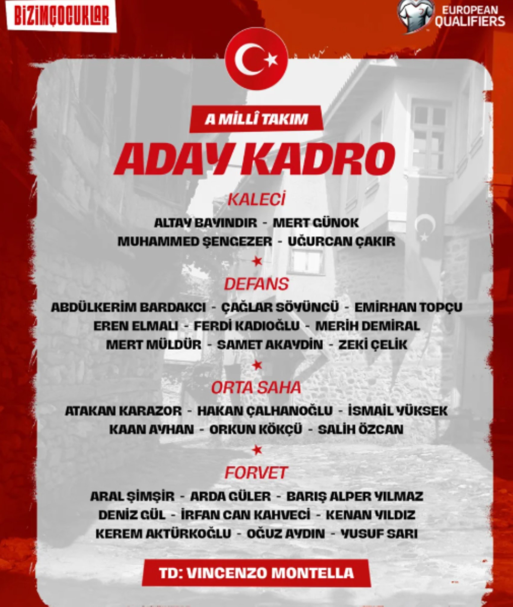 A Milli Futbol Takımı'nın 2026 Dünya Kupası Elemeleri'nde oynayacağı maçların kadrosu açıklandı.