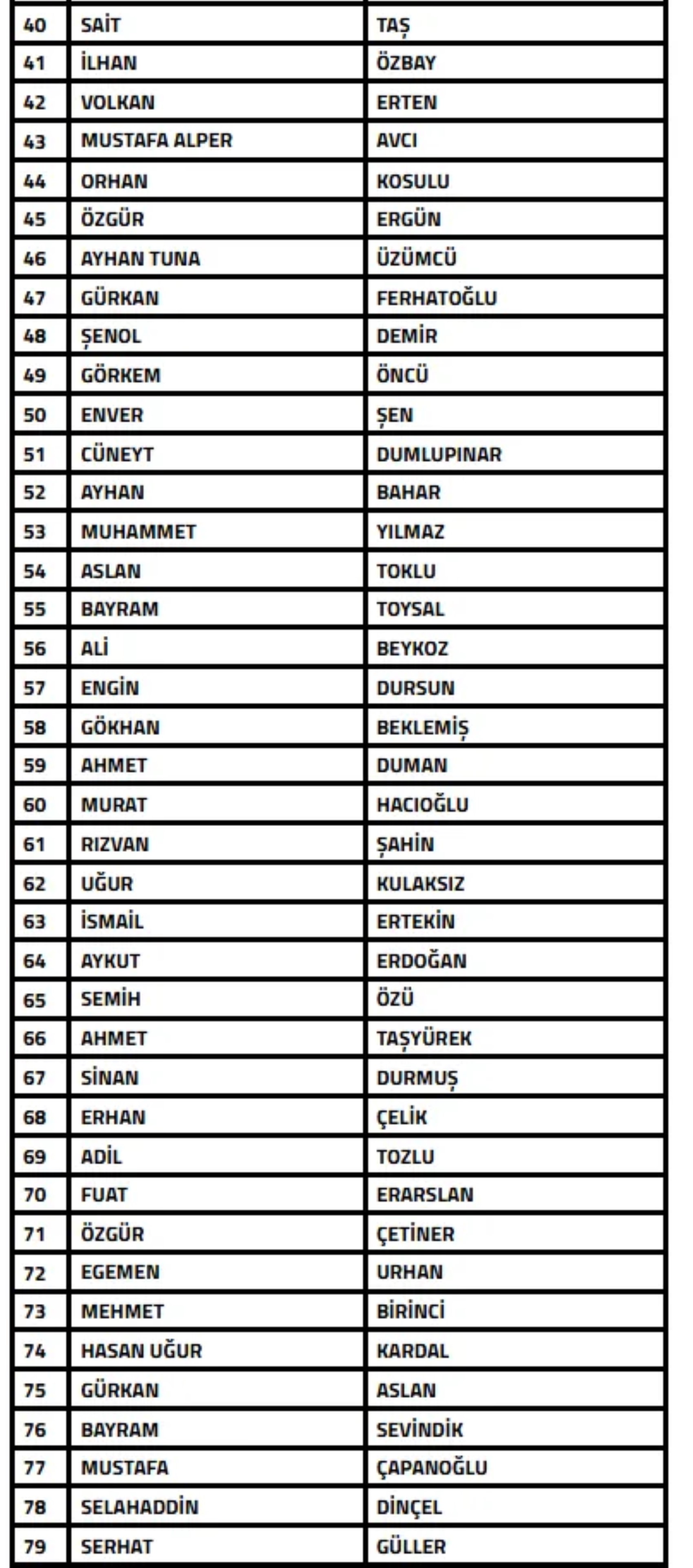 "Türkiye Futbol Federasyonu’nca yürütülen bahis soruşturması kapsamında son 5 yılda Profesyonel Liglerde Teknik Sorumlu olarak görev yapan ve görev yaptığı dönemlerde bahis oynadığı tespit edilen aşağıdaki kişilerin Futbol Disiplin Talimatı’nın 57. maddesi uyarınca 07.01.2026 tarihinden itibaren tedbirli olarak PFDK'ya sevk edilmesine karar verilmiştir."