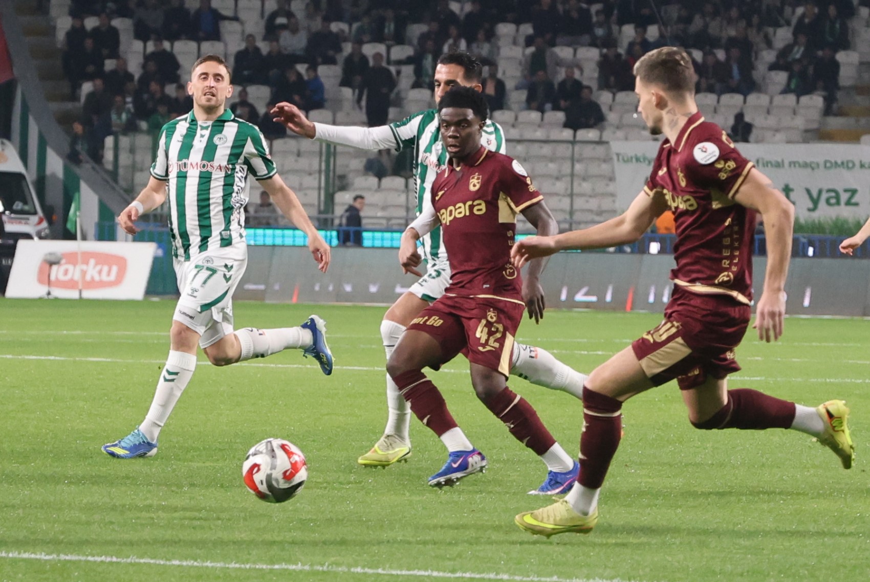 Süper Lig'in 31. haftasında sahasında Trabzonspor, deplasmanda Konyaspor'a 2-1 yenilerek şampiyonluk şansını mucizelere bıraktı.