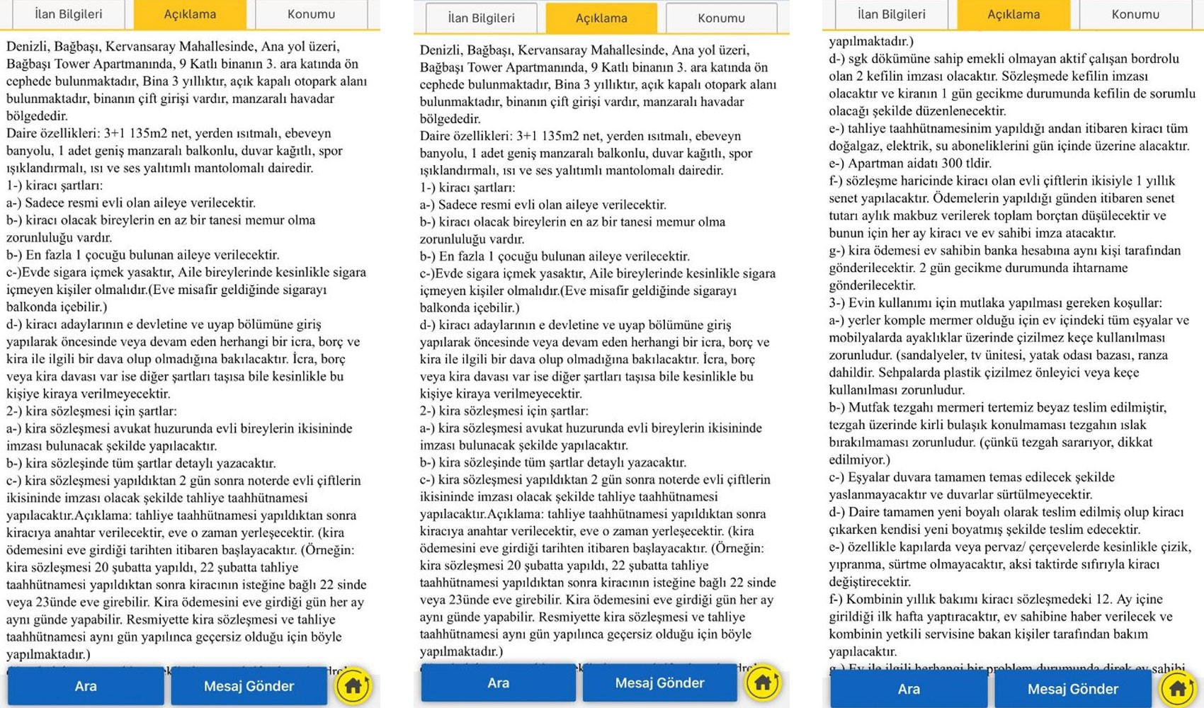 Denizli’nin Pamukkale ilçesinde bir ev sahibi 3+1 dairesini ilan sitesine koydu.
