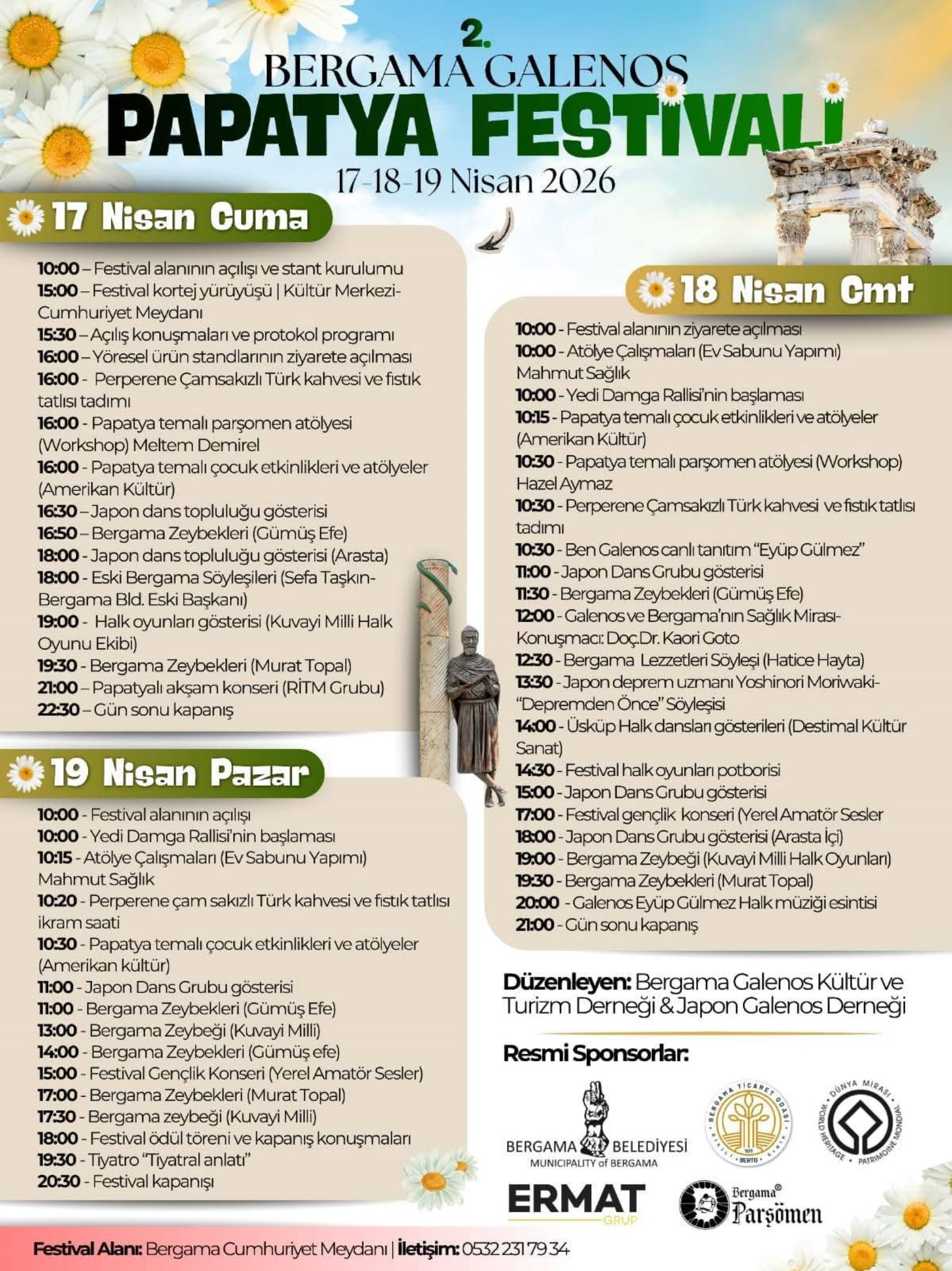 Bergama’nın binlerce yıllık "festivaller kenti" olma geleneği, Atatürk’ün yönergesiyle başlatılan tarihi Kermes’ten sonra, şehrin ikinci büyük festivali olan Papatya Festivali ile yeniden canlanıyor. Bu yıl ikincisi düzenlenen etkinlik, sadece bir bahar kutlaması değil, aynı zamanda kentin dünya tıp tarihine armağan ettiği büyük değer Galenos’un mirasına sahip çıkma projesi olarak öne çıkıyor.