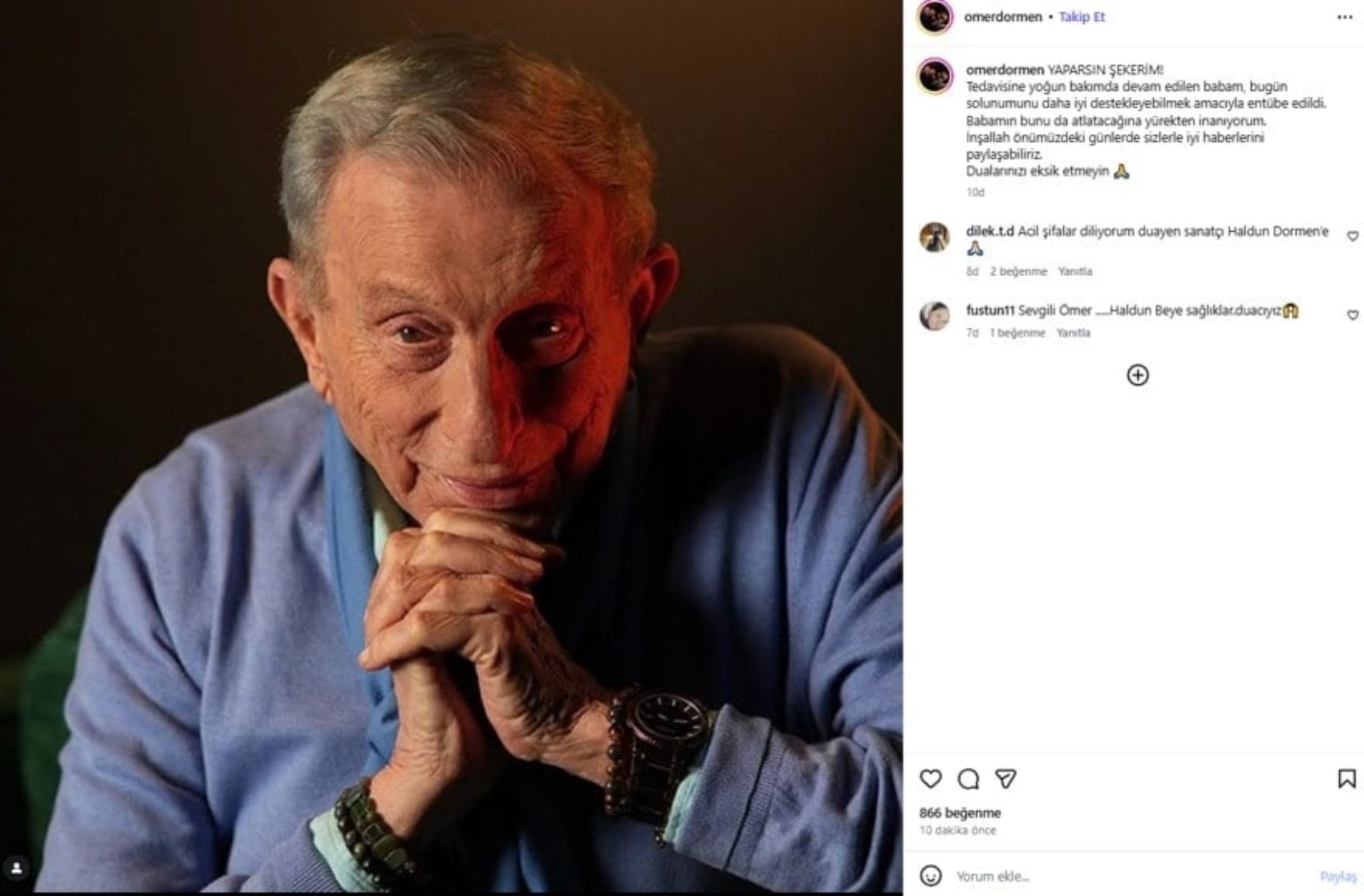Türk tiyatrosunun usta ismi Haldun Dormen, hastanede enfeksiyon tedavisi görürken entübe edildi. Sanatçının oğlu Ömer Dormen, sosyal medyadan yaptığı açıklamada sevenlerinden dua istedi.