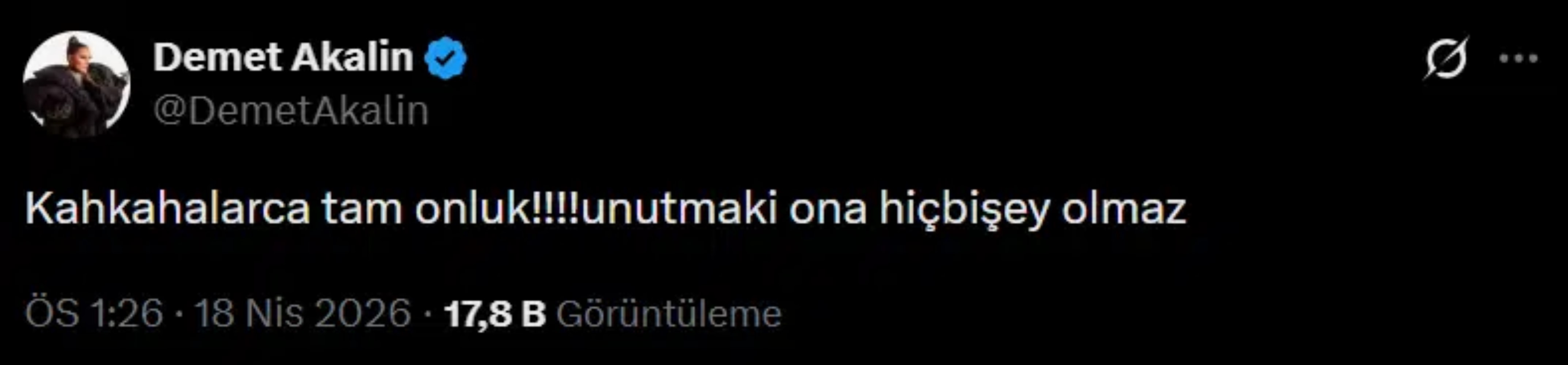 Akalın, paylaşımında, “Kahkahalarca tam onluk! Unutma ki ona hiçbir şey olmaz” ifadelerini kullandı.