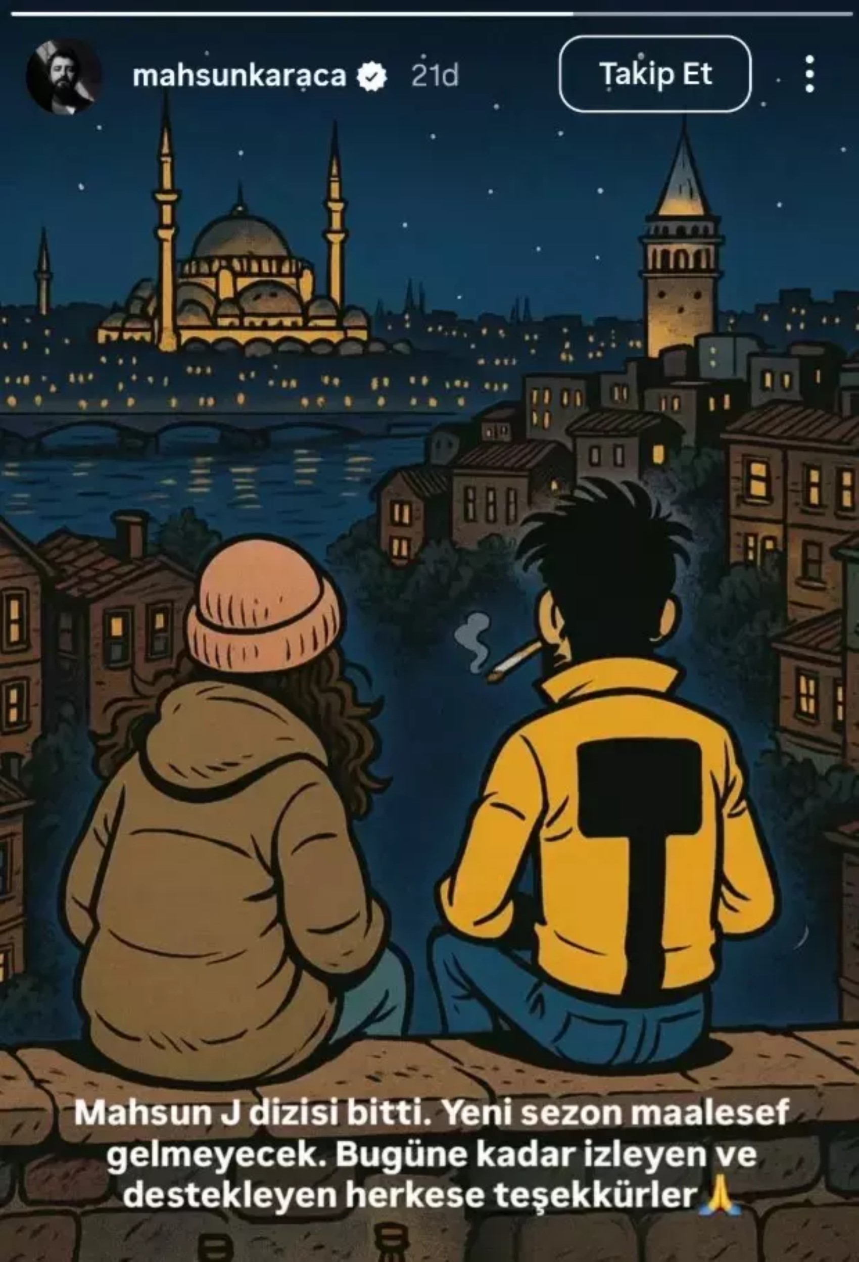 Mahsun Karaca, sosyal medya üzerinden yaptığı açıklamayla Mahsun J. dizisinin sona erdiğini duyurdu. Sevilen yapım için yeni sezon çekilmeyecek.