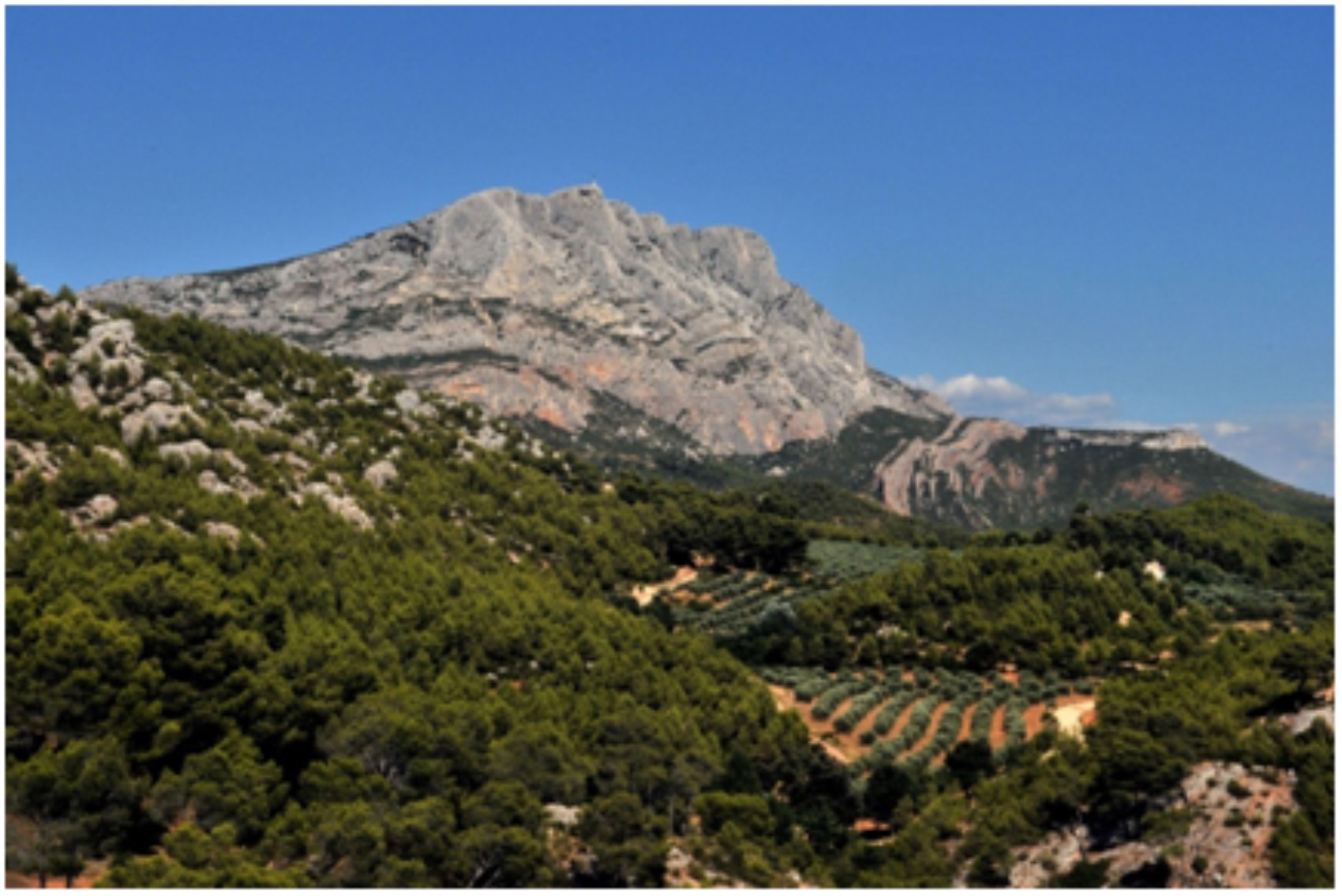 Yeter Hocam artık göster bize şu dağı mı diyorsunuz. Buyurun Efendim. Aşağıdaki fotoğrafta gördüğünüz dağ, resim sanatında devrimsel değişimlere ve gelişmelere ebelik yapacak olan dağdır. Adı Mont Sainte-Victorie’dir ve Fransa'nın güneyindeki Provence-Alpes-Côte d'Azur bölgesinde bulunmaktadır.