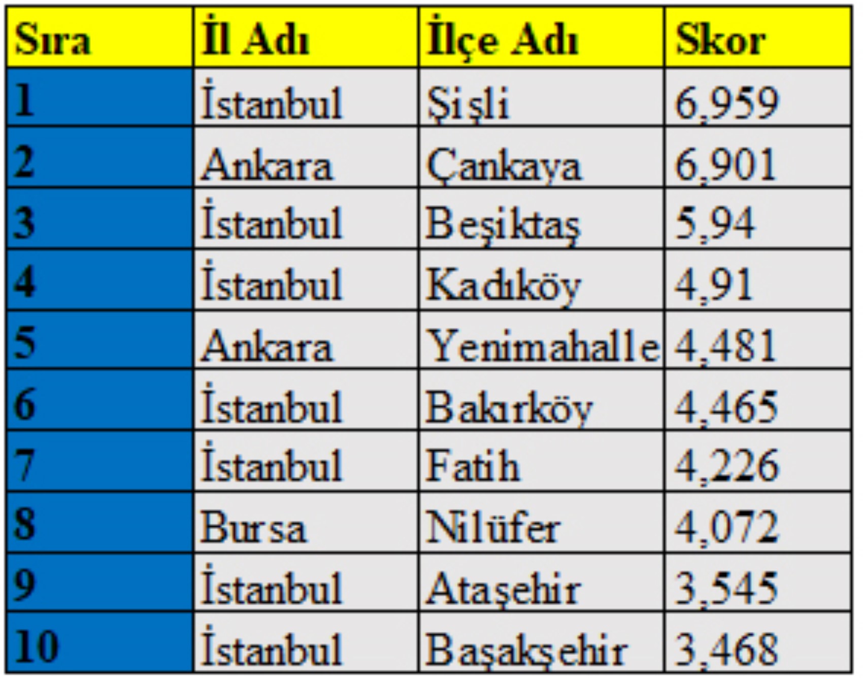 Türkiye genelinde en gelişmiş ilçeler büyükşehirlerin merkez ilçeleri. İstanbul’da Şişli, Beşiktaş, Kadıköy; Ankara’da Çankaya; Bursa’da Nilüfer gibi ilçeler yüksek gelir, güçlü hizmet sektörü, nitelikli işgücü ve gelişmiş sosyal altyapılarıyla üst kademede yer alıyor. Bu ilçeler yalnızca ekonomik üretim değil, aynı zamanda yenilik ve hizmet kalitesi açısından da ülkenin merkezleri konumunda.