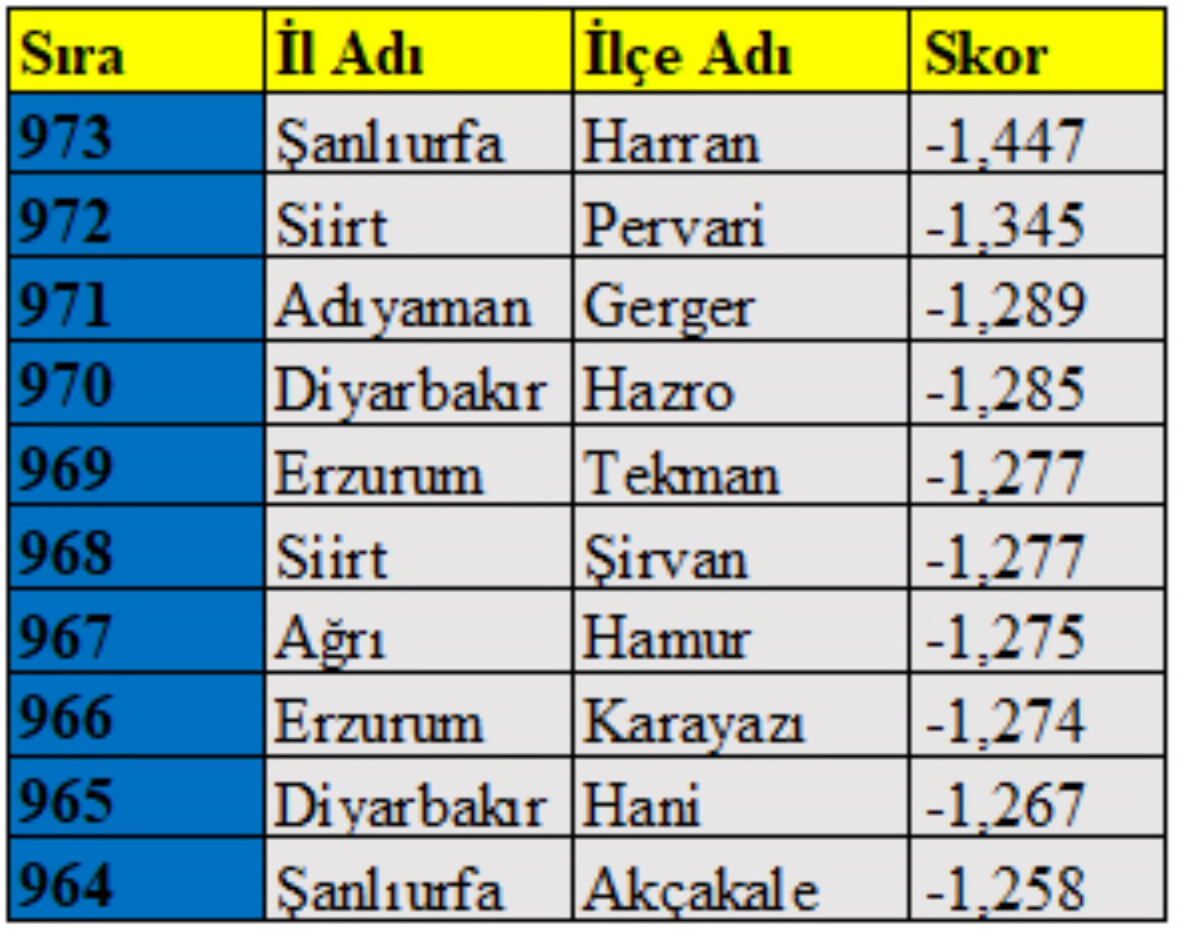 İlçe SEGE-2022’nin ortaya koyduğu tablo net: Kalkınma sorunu artık yalnızca “bölgesel” değil; il sınırları içinde dahi derinleşen bir mekânsal ayrışma meselesi.