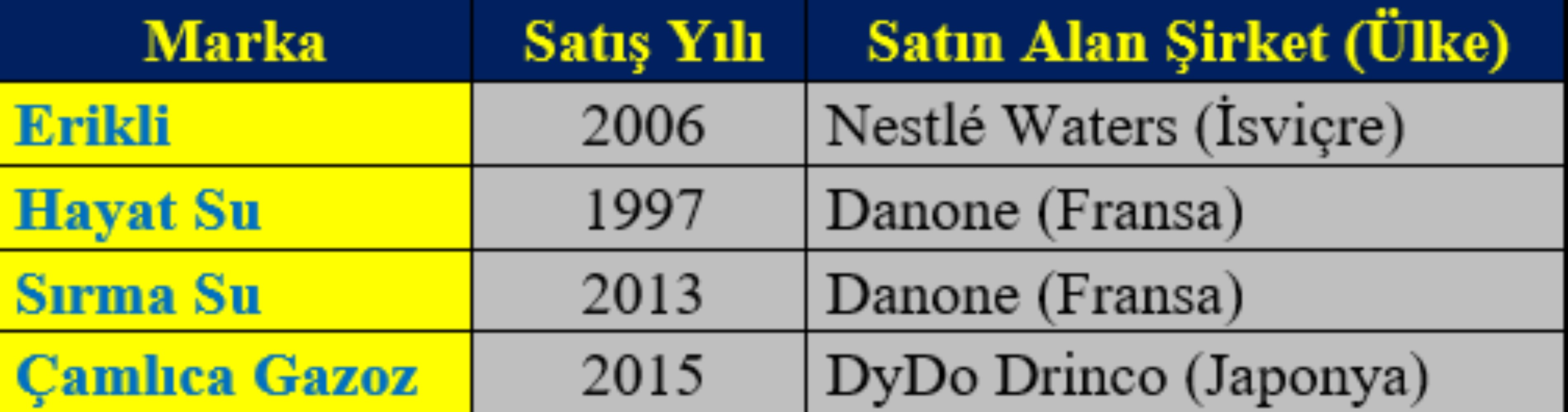 Benzer bir tablo, su ve gazlı içecek pazarında da karşımıza çıkıyor. Erikli (Nestlé), Hayat ve Sırma (Danone) ile Çamlıca Gazoz (DyDo) gibi köklü markalar, küresel devlerin bünyesine katıldı.