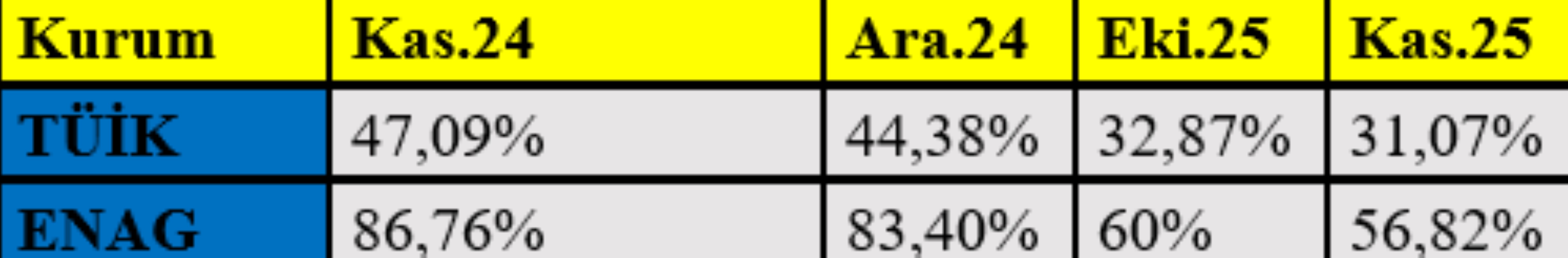 Aşağıda TÜİK ve ENAG’ın yıllık enflasyon verilerinin karşılaştırması yer alıyor: