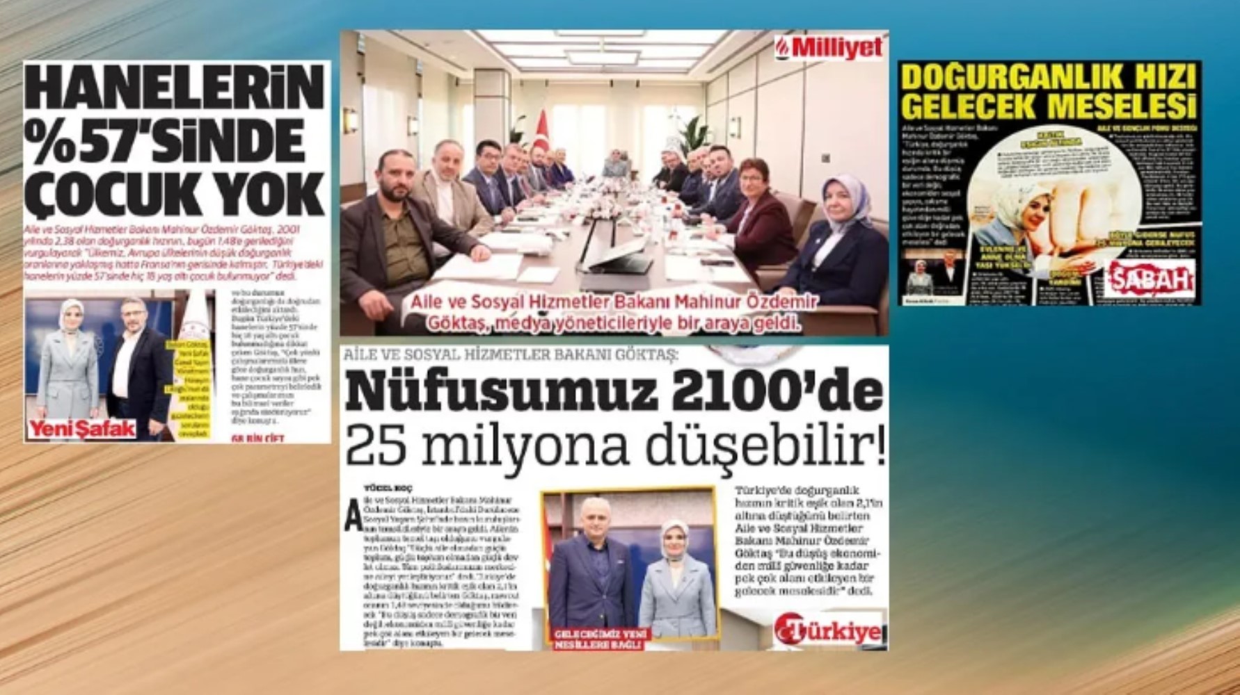 Aile ve Sosyal Hizmetler Bakanı Mahinur Özdemir Göktaş da Darülaceze Sosyal Yaşam Şehri’nde düzenlediği basın toplantısına medyanın üst düzey yöneticilerini çağırmıştı. Göktaş’ın, “basın kuruluşlarının temsilcileri ile bir araya geldiği” belirtilen haberler Milliyet, Nefes, Karar ve Yeni Akit gibi gazetelerde imzasız kullanılmıştı. Hürriyet’te deneyimli muhabir Fatma Aksu’nun imzası yer alıyordu haberde.