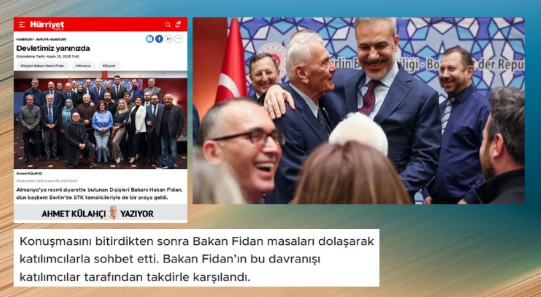 Dışişleri Bakanı Hakan Fidan’ın, Türk sivil toplum kuruluşlarının yöneticileri ve gazetecilerle Berlin’deki buluşmasından geriye çarpıcı haberler değil, “anı” fotoğrafları kaldı.