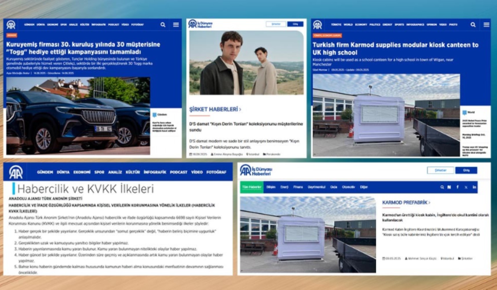 Bu bölümü tarayınca en çok karşıma çıkan da Karmod adlı bir şirketin metinleriydi. AA’da bu şirketin faaliyetleriyle ilgili her ay en az 6-7 “haber” metni yayımlanıyor. Üstelik “Karmod'un ürettiği kabin, İngiltere'de kantin olarak kullanılacak” gibi “haber”ler, AA’nın İngilizce web sitesinin “Ekonomi” bölümünde de aynen yayımlanıyor.