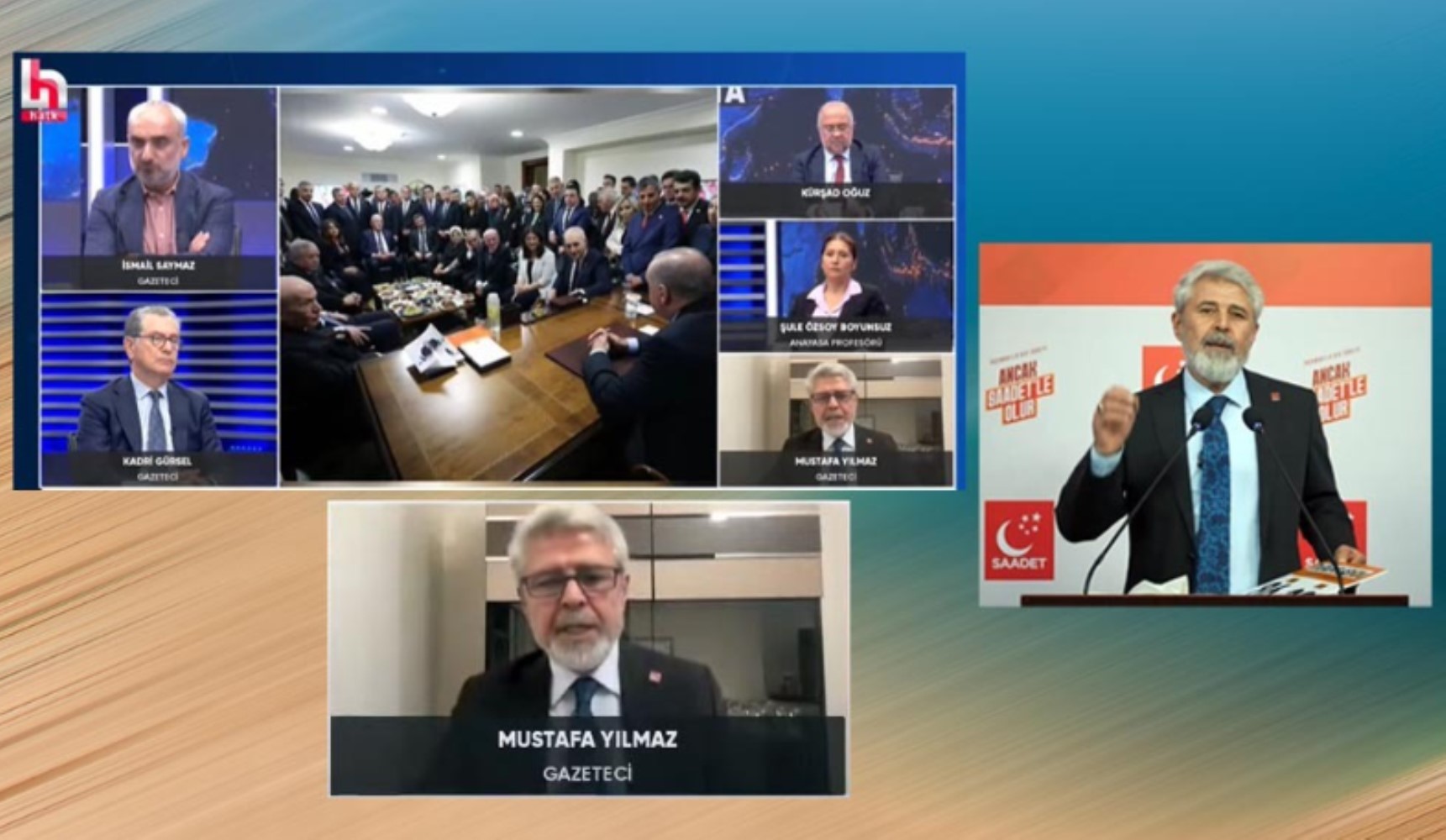 Belki de bu yüzden Mustafa Yılmaz, programda konuşurken bir ara politik kimliğini de anımsatma gereği duydu. “Saadet Partisi Genel Başkan Yardımcısı olan bir gazeteci olarak şunu söyleyebilirim” dedi. Ancak orada mesleğinin “gazetecilik” olduğunu anımsatması da yersizdi. Zira o cümlenin ardından bir gazeteci olarak fikirlerini aktarmadı; “Türkiye’de AK Parti’ye muhalefeti ilk başlatan parti Saadet Partisi’dir” diyerek partisini savundu.