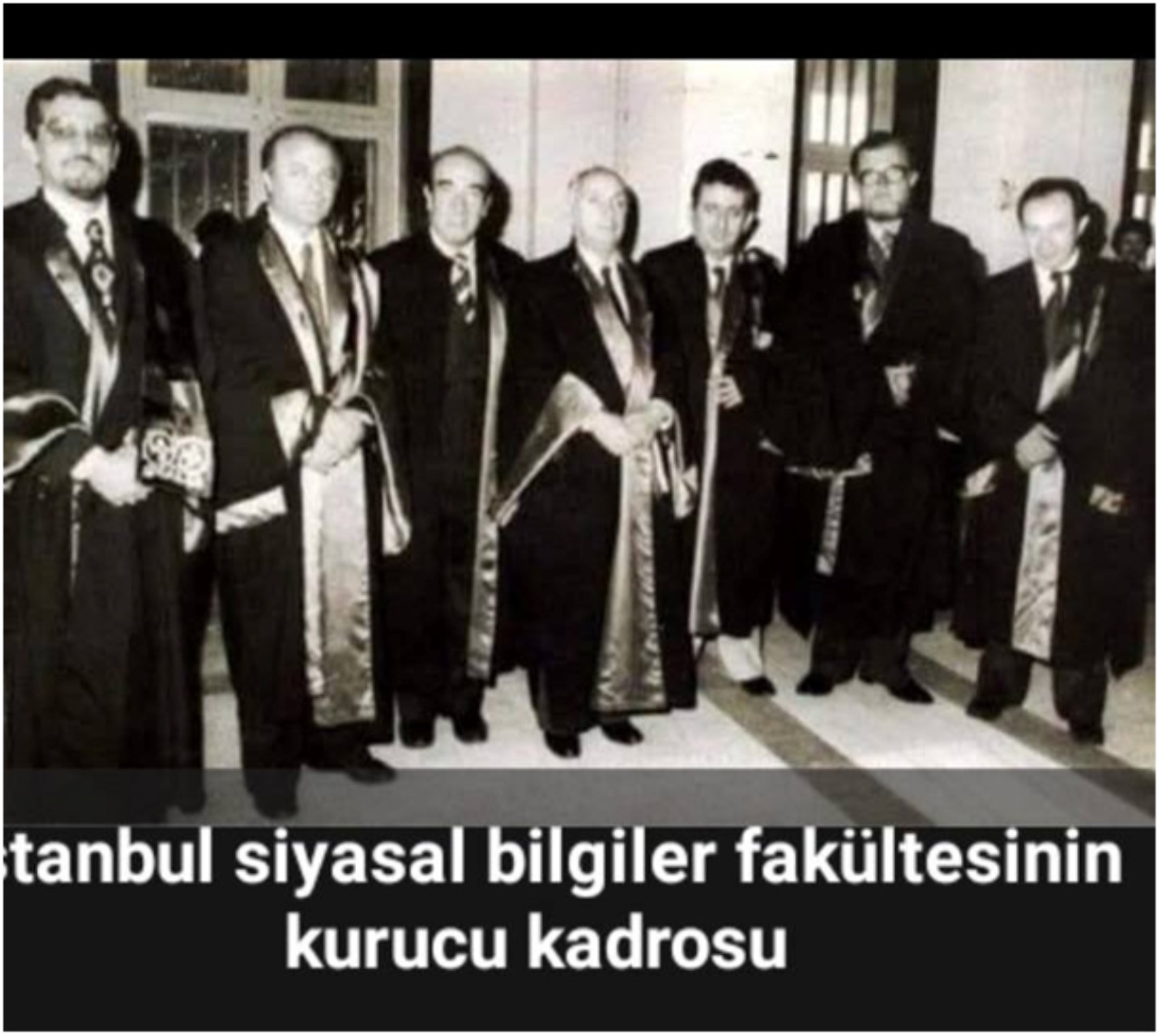 Burada fakültemizin kurucu hocalarını saymak isterim. Çoğunluğu Hukuk Fakültesinden, İstanbul Üniversitesi Siyasal Bilimler Fakültesinin kuruluşuna katkıda bulunmak üzere görevlendirilmiş öğretim üyeleriydi: Tarık Zafer Tunaya, Aydın Aybay, Ümit Yaşar Doğanay, Murat Sarıca, Ali Ülkü Azrak, Ersan İlal, İzzettin Doğan; Nur Vergin. Sevim Görgün,Nazif Kuyucuklu, Ersin Kalaycıoğlu, Burhan Şenatalar ve Şükrü Hanioğlu daha sonra İktisat Fakültesinden fakültemize geçtiler. Yıldızhan Yayla, DuygunYarsuvat, Ata Sakmar, Mesut Önen hocalarımız biz ikinci sınıfa geçtikten sonra fakülteye geldiler.