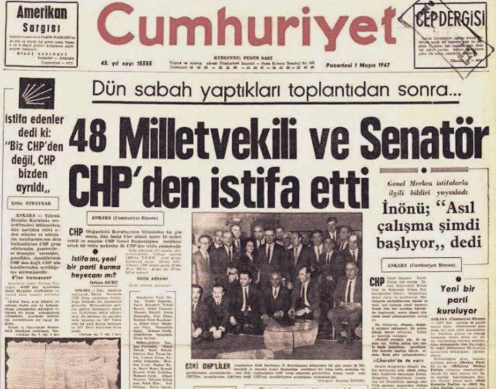 CHP’den kopan fraksiyonun genel oy düzeyindeki karşılığının düşük olduğu 1969 seçimlerinde görülecekti. (%6.5: 15 milletvekili)