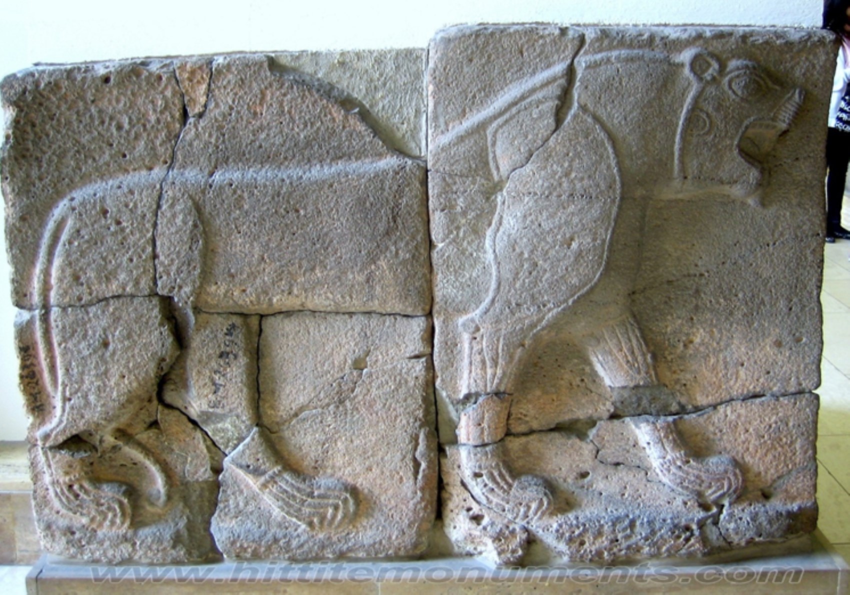 (Gaziantep-Zincirli’den maalesef Hamdi Bey’in göz yumasıyla (!) Alman C.Humann tarafından parça parça kaçırılan eserlerden biri, “Antep aslanı”- Berlin Önasya-Vorasietische Müzesi))