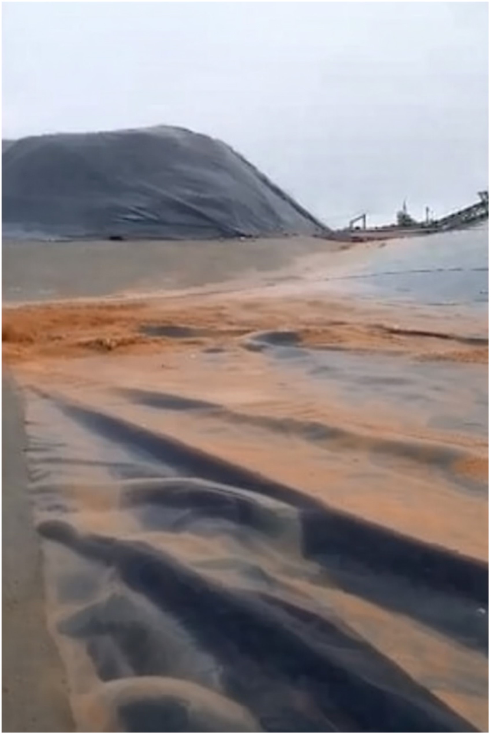 (Fatsa Altıntepe siyanürlü altın madeninde yayıncı bilgilerine göre taşkın. Karşıda siyanürlü cevher yığını ve taşkınla akan kirli sular . Kaynak: Odatv: https://www.facebook.com/watch/?v=544606854226172)