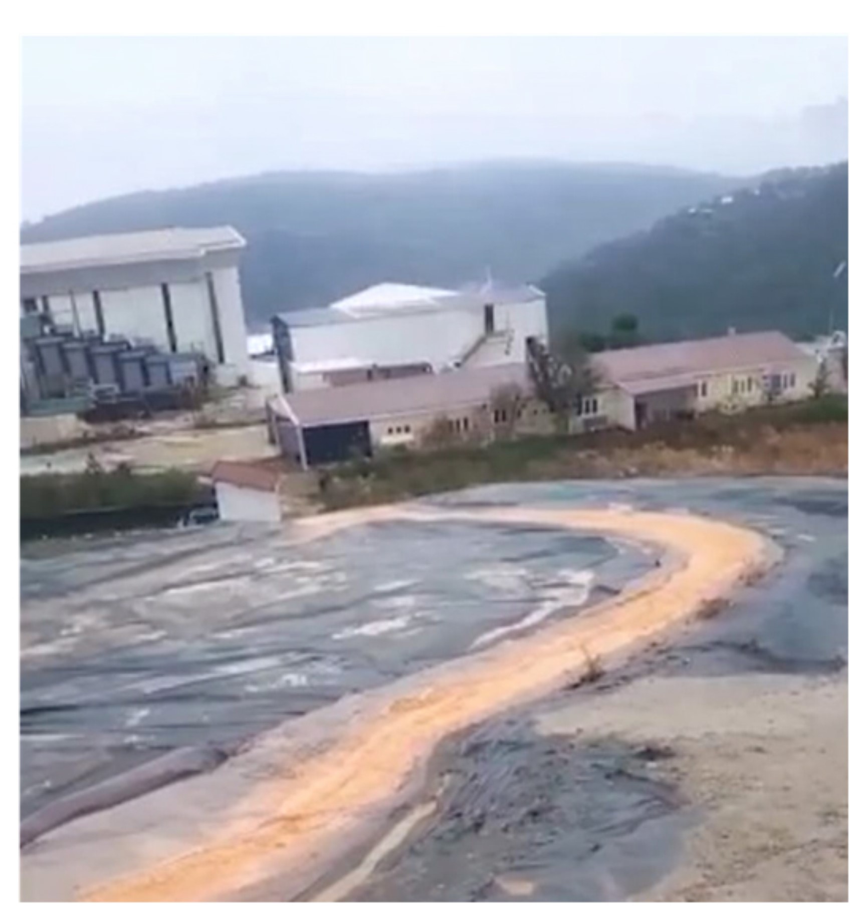 (Fatsa siyanürlü altın madeninde yayıncı bilgilerine göre taşkın. Taşkınla akan kirli sular . Kaynak: Odatv: https://www.facebook.com/watch/?v=544606854226172)