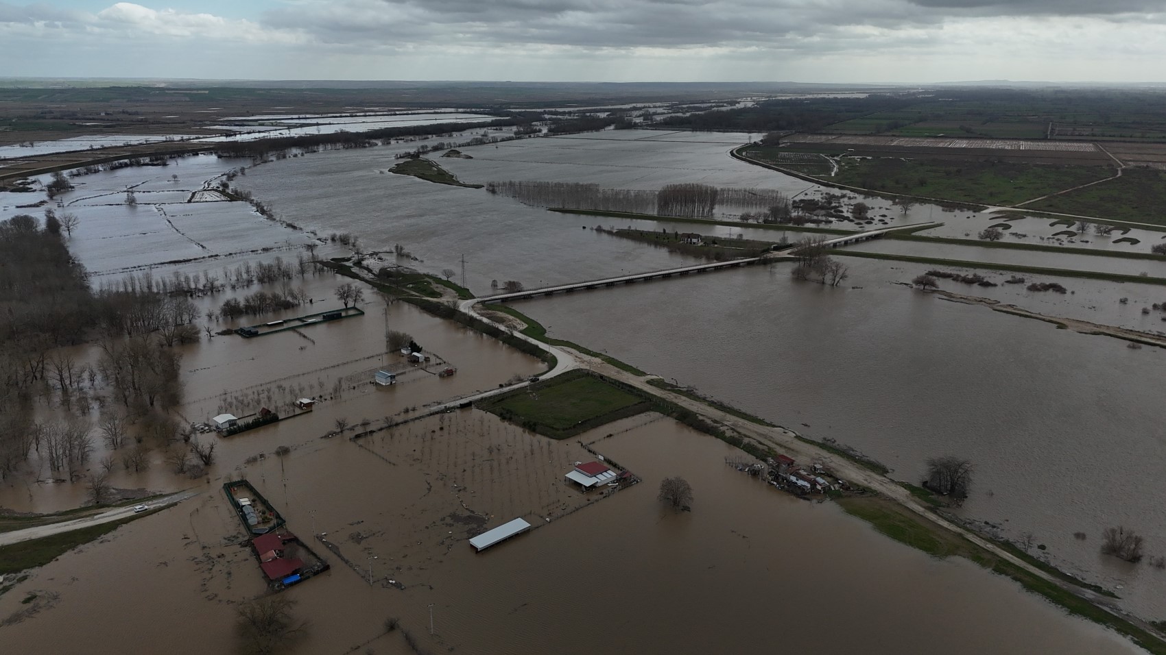 Edirne'de artan yağışlar ve Bulgaristan'daki barajlarda bırakılan sular sonrası Tunca ve Meriç nehirlerinde debi yükseldi, bazı tarım arazileri ve hobi bahçeleri sular altında kaldı. Taşkının boyutu dron ile havadan görüntülendi.